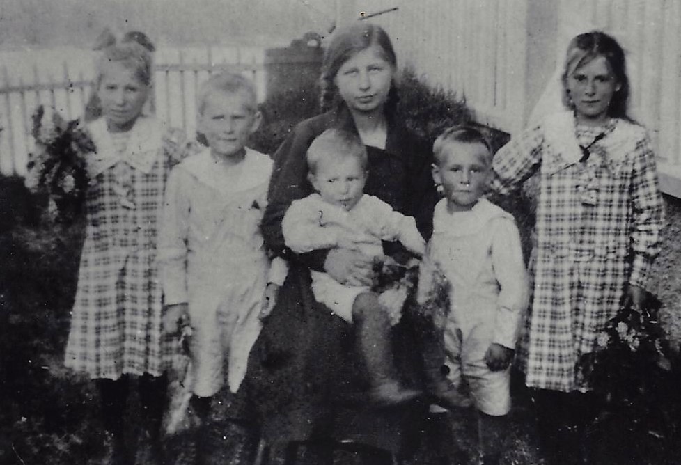 Pappa med sina syskon omkring1920. Pappa är nr 2 från höger