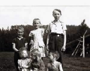 Min pappa brukade säga att han hade 1 och ett halvt dussin barn. Vi var alltså 7 barn och 2 föräldrar i huset. Trots att vi var så många barn saknades inget. Visst var det ont om pengar och vi fick inget utöver det nödvändiga. Julklapparna var få, födelsedagarna gick omärkt förbi- barnkalas förekom ej. Kläderna syddes i huvudsak av mamma. Det var stort när vi fick köpta kläder.